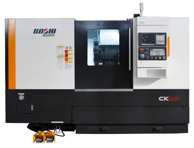 CK40D/CK50D是一款配置國產(chǎn)電主軸的實(shí)用型數(shù)控車床,采用高強(qiáng)度鑄鐵鑄造、床身底座整體式結(jié)構(gòu)、傾斜導(dǎo)軌,主軸軸承及進(jìn)給絲杠專用軸承傳動(dòng)噪音低;配備國產(chǎn)多工位轉(zhuǎn)塔刀架,就近換刀。機(jī)床可配置日本FANUC 0i-TF(5)、西門子828D等數(shù)控系統(tǒng),也可選配國內(nèi)外其它品牌高性價(jià)比數(shù)控系統(tǒng)。